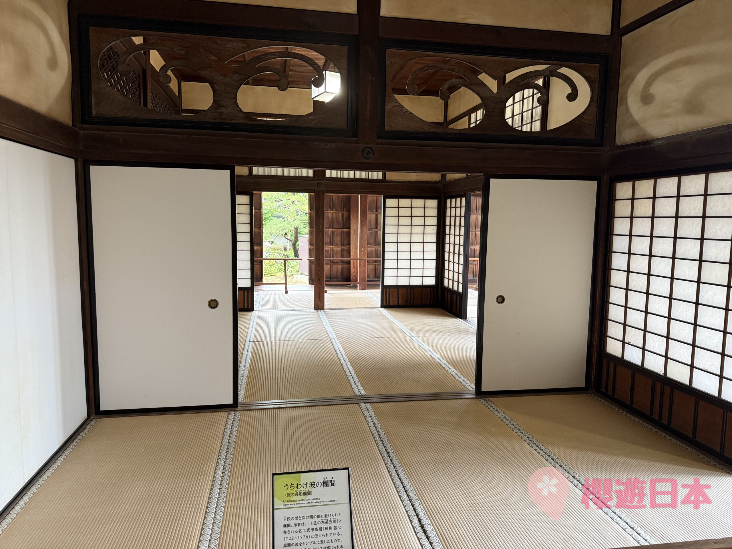 走進高知城本丸御殿,別忘了抬頭欣賞華麗的「欄間」設計~ 最具代表性的,是表現土佐荒波意象的「打ち分け波の欄間」,據說出自江戶時代中期土佐名工——武市甚七之手,波濤洶湧的雕刻線條極具動感,令人嘆為觀止! 這些作品充分展現當時匠人對細節的執著與美學品味,是參觀高知城不可錯過的看點之一 ~
